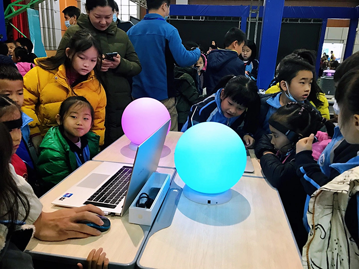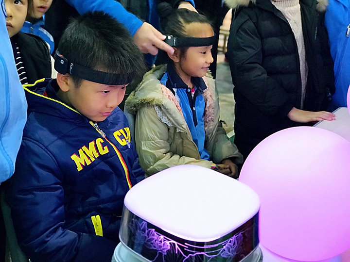 学生们玩转视友科技的脑波灯和Ego脑波舱