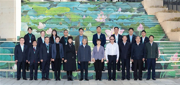 美学素养发展中心里,吴英明向陈宝生一行着重介绍了学校美学素养发展中心的建设规划,并引导陈宝生一行具体参观了四雅室、烘焙室、听觉中心以及视觉中心等。四雅室内,学生正在参与品茗课程的学习。陈宝生一行进入教室后,学生们热情地向各位领导问好,并以安徽名茶黄山毛峰、太平猴魁向各位领导敬茶。陈宝生勉励各位学生,“要努力学习中华民族传统文化,将这种美好的文化内化成一种生活习惯,并不断传承及弘扬”。在视觉中心,摄影社同学将此次调研所采集的领导照片现场处理并制作海报,作为礼物送给各位领导。