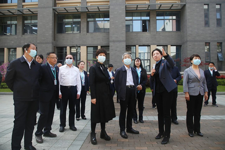 校门口,吴英明向陈宝生一行介绍了学校的办学规模以及文化理念等,并详细介绍了合肥四中在落实安徽省中小学德育铸魂、智育提质、体教融合、美育熏陶、劳动促进等五项行动的具体举措。