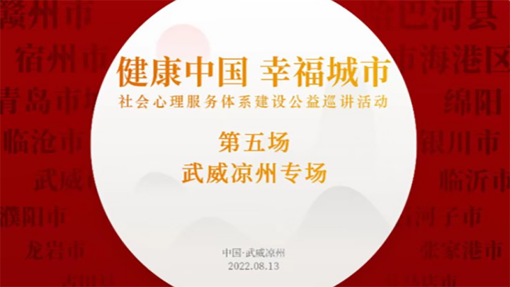 8月13日上午9点,由武威市凉州区和全国二十余个地区联合主办的“健康中国、幸福城市”全国社会心理服务体系建设公益巡讲活动第5场武威凉州专场即将拉开帷幕!