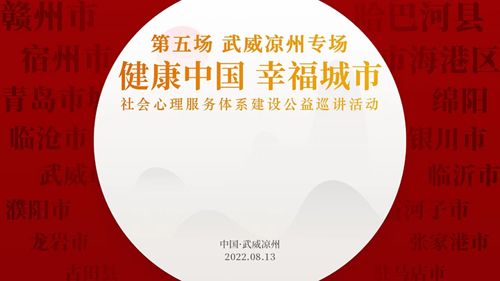 8月13日,“健康中国、幸福城市”全国社会心理服务体系建设公益巡讲活动第五站武威凉州专场圆满落幕。下一站公益巡讲活动将在河南濮阳举行。