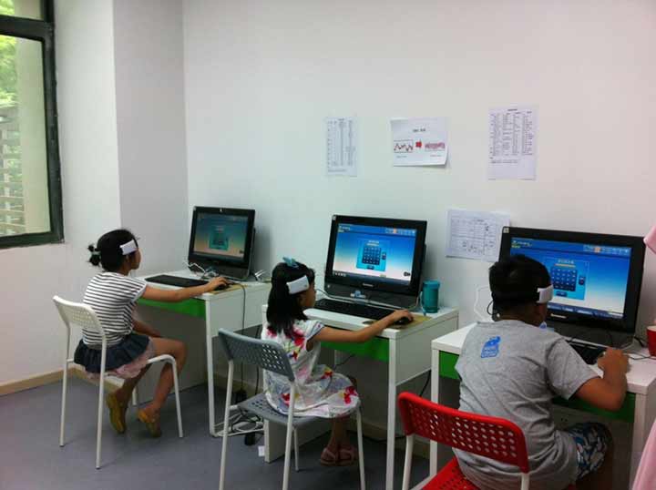 学生们在进行迈思睿数学认知能力训练项目——《舒尔特方格》