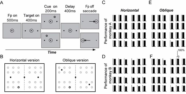 在这篇研究工作中,研究人员通训练清醒猕猴一个位置刺激到眼动目标点映射的行为任务,同时记录猕猴大脑后顶叶皮层神经元在猕猴完成行为任务中的活性。在这个行为任务中,猕猴需要将多个位置刺激对应到两个眼动目标点上。实验结果显示:后顶叶皮层单神经元的活性编码了多个刺激位置映射到单个眼动目标点的过程。这种对复杂的感知运动转换的编码超越了后顶叶皮层神经元的经典感受野,因为它在位置刺激出现在神经元经典感受野之外时也存在。对照实验表明,这种对复杂感觉刺激到运动反应映射的编码相关的活性与对单纯的运动计划、空间注意、空间分类编码相关的活性不一致。这些结果显示灵长类动物后顶叶皮层是参与编码复杂的感知到运动转化过程的重要脑区。
